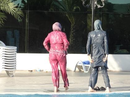 Die Badeseentemperaturen, aber auch Nord- und Ostsee, sind mit rund 18-19 ° C recht frisch. Vielleicht hilft so ein Ganzkörperschwimmanzug, diese gottesfürchtigen Damen tragen ihn im Bild, um nicht zu frieren.