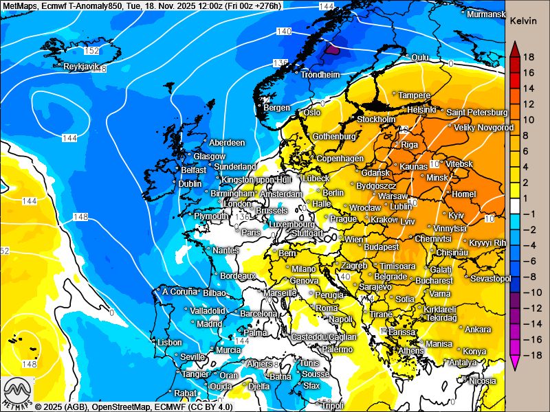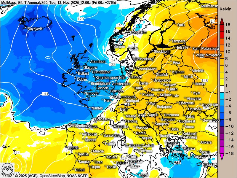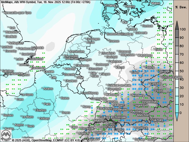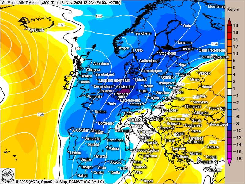 Hier die jeweiligen Karten und die AIFS-Wetterkarte für den 18.11.: