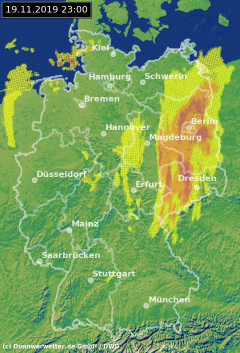 Radarbild von Dienstag, 19.11.2019 um 23.00 Uhr
