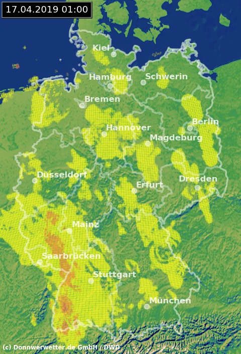 Radarbild von Mittwoch, 17.04.2019 um 01.00 Uhr