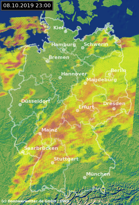 Radarbild von Dienstag, 08.10.2019 um 23.00 Uhr