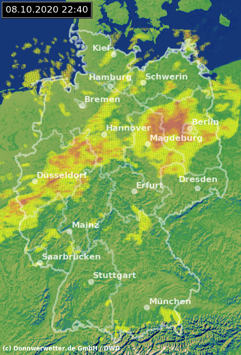 Radarbild von Donnerstag, 08.10.2020 um 22.40 Uhr