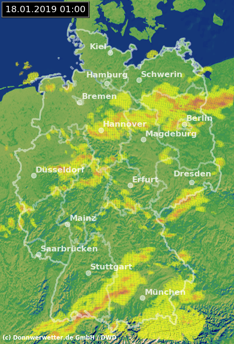 Radarbild von Freitag, 18.01.2019 um 01.00 Uhr
