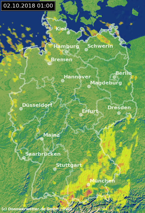 Radarbild von Dienstag, 02.10.2018 um 01.00 Uhr