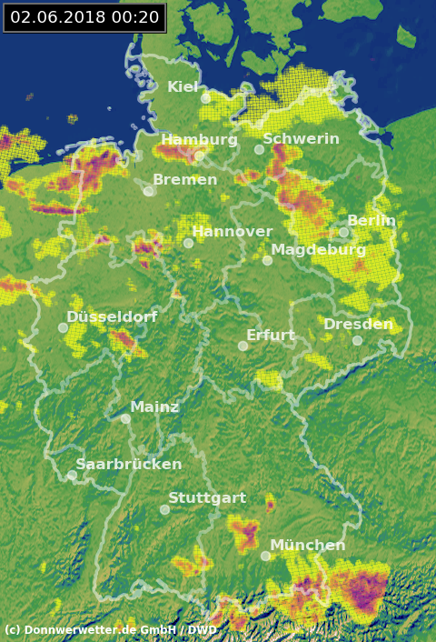 Radarbild von Samstag, 02.06.2018 um 00.20 Uhr
