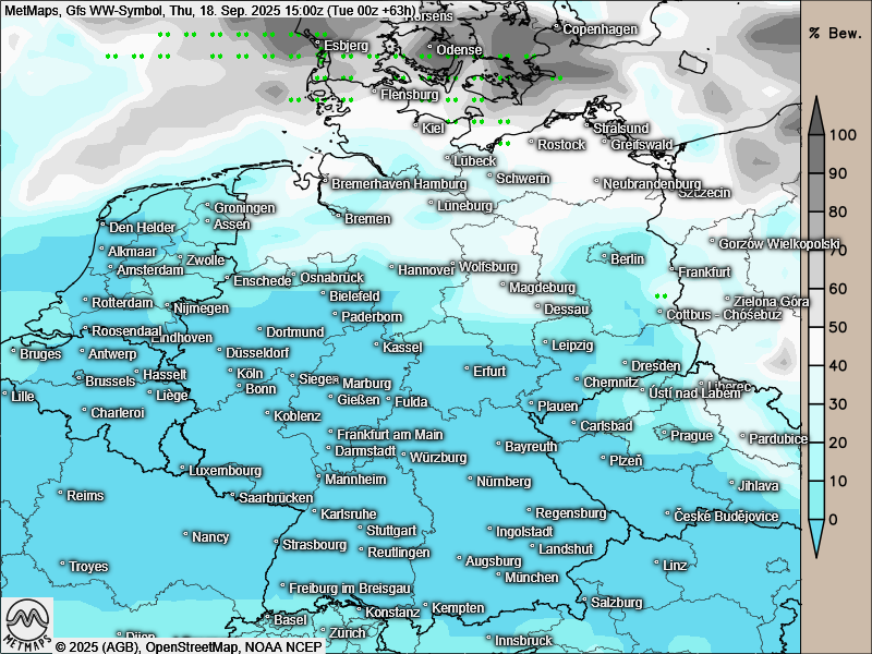 Die Wetterkarte für Donnerstagnachmittag (15:00 Uhr) nach GFS: