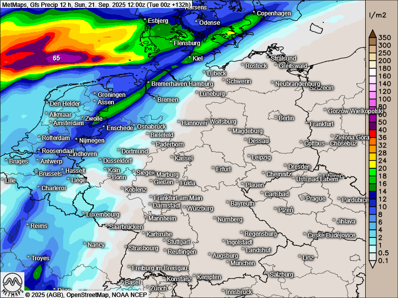 Die 12-Stunden-Regenmengen bis Sonntagmittag nach GFS:
