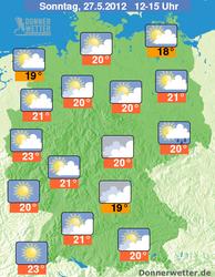 Am Sonntag ziehen dann wahrscheinlich Wolken auf, die aber nach dem jetzigen Stand nur im Südosten und an der Nordsee vereinzelte Schauer bringen. Die Temperaturen steigen am Sonntag auf Werte zwischen 18 Grad an der Ostsee und 24 Grad im Westen. Im Süden und Osten wird es sonnig bei wechselnder Bewölkung und Temperaturen um 21 °C.
