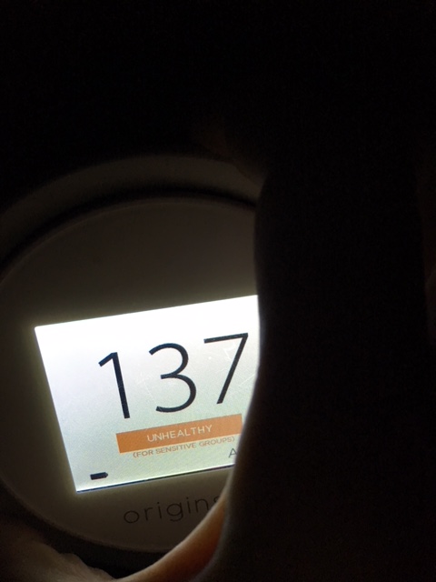 Hier die Werte von unserer Station in Bonn mit 42 ug/m3, aber bundesweit sind teilweise doppelt so hohe Feinstaubwerte zu aktuell zu messen. Unten zeigt das Messgerät die Bewertung an (unhealthy - ungesund).