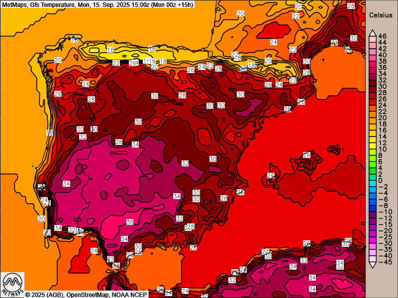 In weiten Teilen Spaniens werden derzeit Tageshöchstwerte zwischen 36 und 38 Grad gemessen. Dieses Temperaturniveau liegt deutlich über dem, was für Mitte September üblich ist: Normalerweise sinken die Werte zu dieser Jahreszeit auch in Spanien spürbar und bewegen sich im Durchschnitt vielerorts um die 25 bis 28 Grad.