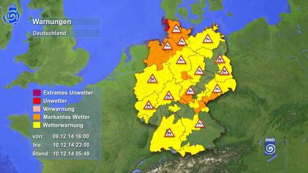 Die aktuelle Unwetterlage: Im Norden und Westen schwerer Sturm. Im Osten Schnee