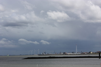 Sturmtief Burkhard gefolgt von Sturmtief Christian ziehen bis Montagabend über Deutschland hinweg. Sturmböen sind im Westen und Norden und in den Mittelgebirgen am Sonntagnachmittag und im Laufe des Montags zu erwarten. Orkanböen werden auf der offenen Nordsee erwartet. Die Bilder zeigen Cuxhaven an der Nordseeküste bei starkem Wind.