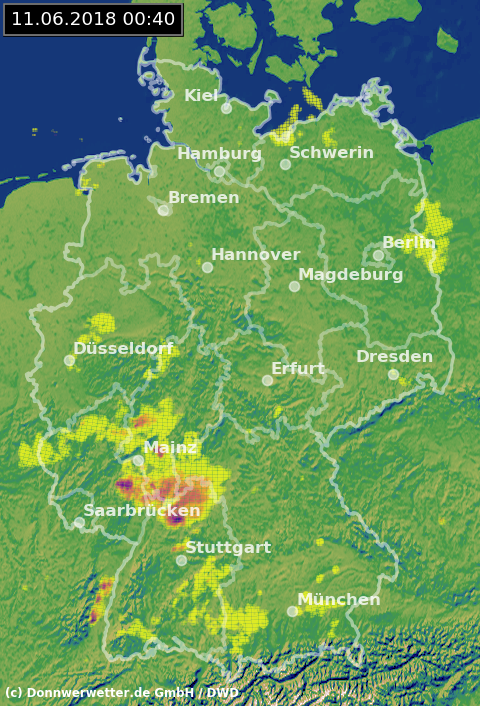 Radarbild von Montag, 11.06.2018 um 00.40 Uhr