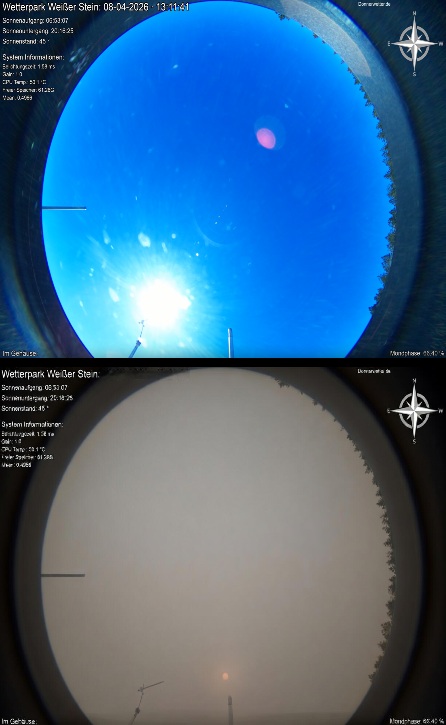 Aprilhimmel über dem Donnerwetter.de-Wetterpark - die zweite KI-bearbeitete Aufnahme zeigt, wie der Himmel nach dem Ausbruch des Tambora ausgesehen hat.