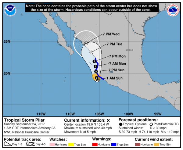 Nach mehreren Erdbeben in Mexiko mit hunderten Toten, muss sich Mexiko mit dem Tropensturm Pilar herumschlagen. Es bringt an der Pazifikküste starken Regen und Wind. Es weren viele Menschen durch Erdrutsche gefährdet.