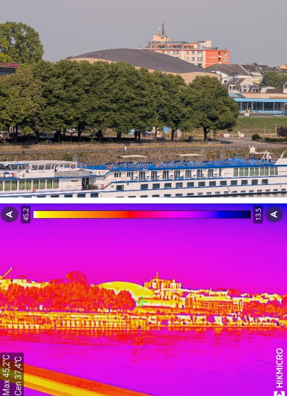 Eine Messung mit IR-Kamera am Donnerstagvormittag bescheinigte der grauen Kuppel bereits Temperaturen von nahezu 50 Grad – und in der Nachmittagshitze kommen noch einmal 20 bis 30 Grad hinzu. Die Hitze „von oben“ muss also mit hohem Energieaufwand herunter reguliert werden, damit die Temperaturen im Konzertsaal für Besucherinnen und Besucher erträglich bleiben.