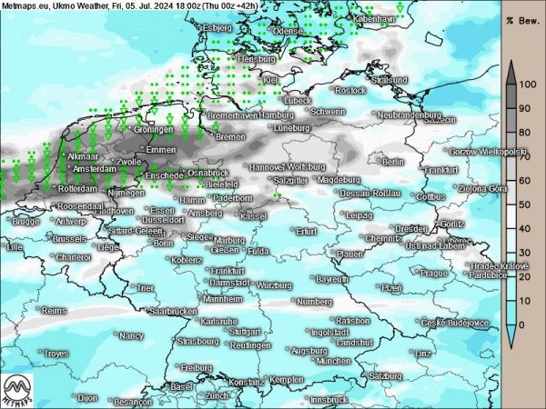 Hier die Modellrechnung nach UKMO für den 05.07.2024, 19 Uhr:.