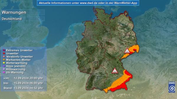 Entsprechende Unwetterwarnungen des Deutschen Wetterdienstes sind bereits aktiv: