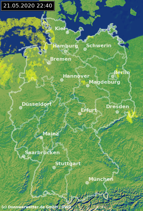 Radarbild von Donnerstag, 21.05.2020 um 22.40 Uhr