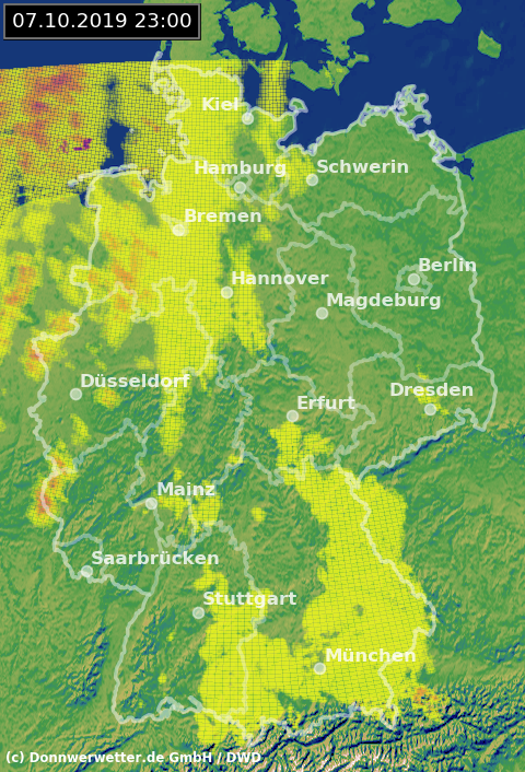 Radarbild von Montag, 08.10.2019 um 23.00 Uhr