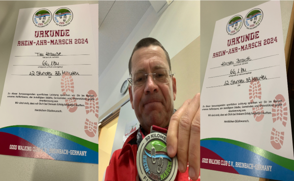 Für die vollen 100 fehlten dann am Ende doch die Kräfte - die durchwanderte Nacht beim 100-Kilometer-Rhein-Ahr-Marsch geht für donnerwetter.de-Geschäftsführer Karsten Brandt und Meteorologe Tim Krause nach 12 Stunden und 33 Minuten und 66,1 zurückgelegten Kilometern zu Ende.
