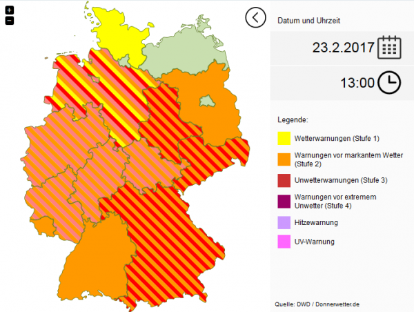 Aktuelle Warnlage am Donnerstag (Stand 13.00 Uhr)