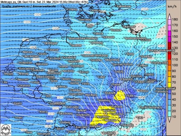 Und auch sonst dürfte es mit Frühlingsgefühlen vorerst schwierig werden: Am Samstag bekommt es vor allem Bayern und Baden-Württemberg mit starkem Regen und Sturmböen zu tun.