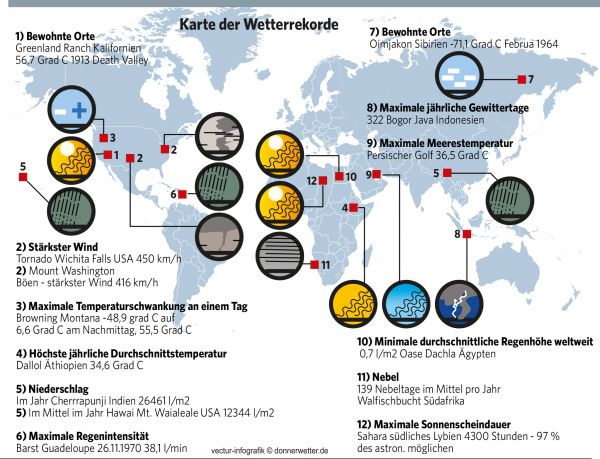 Von Nebel bis Sonnenschein und extremen Wind bis hin zu klirrender Kälte und Hitze. Die Donnerwetter.de-Extremwetterkarte.