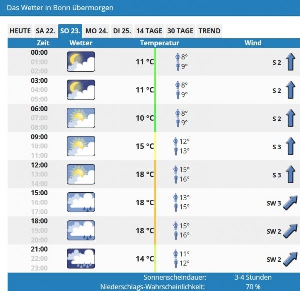 Einen kleinen Knick bekommt der Sonntag dann nach 15/16 Uhr, also in etwa gegen Veranstaltungsende. Mit dem Durchzug einer Kaltfront steigt auch das Schauerrisiko an. Die Schauer können in den späteren Nachmittagsstunden dann auch häufiger mal kräftig ausfallen - wer trocken bleiben will, sollte also vor allem beim der Marathondistanz "einen Zahn zulegen".