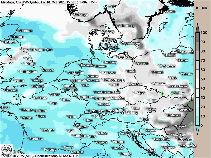 Auch über das Wochenende und auch zum Wochenanfang ist kaum mit einer Wetteränderung zu rechnen. Lediglich mit den Temperaturen geht es ab Montag/Dienstag nach unten: In der Hauptstadt werden am Dienstag vermutlich kaum noch Höchstwerte über 10 Grad erreicht.