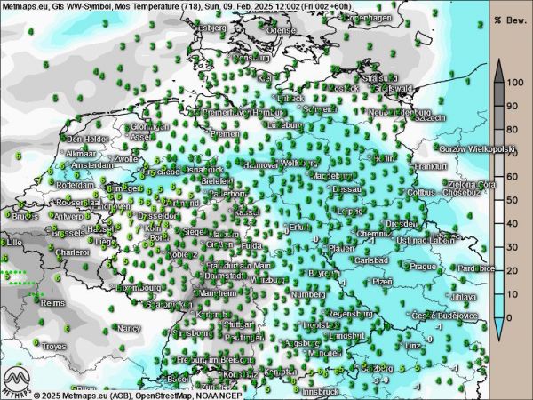 Und auch das Windfeld kommt am Wochenende langsam zur Ruhe; am Sonntag ist der Wind dann weitgehend raus und neben einigen Wolkenfeldern hat bei leichten Plusgraden sogar die Sonne wieder größere Chancen.
