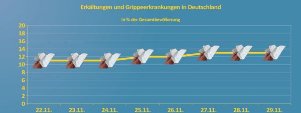 Das Team von donnerwetter.de erarbeitet seit vielen Jahren nicht nur Wetter- sondern in dessen Abhängigkeit auch Infektionsprognosen. So informieren wir unsere Nutzer seit Sommer 2014 wöchentlich, an welchen Tagen das Risiko, sich eine Grippe oder grippalen Infekt einzuhandeln besonders erhöht ist.